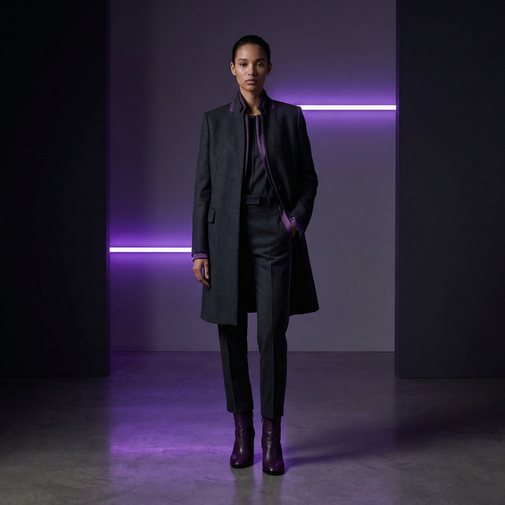 Товар: фото одежды (вид спереди/сзади). Модель: типаж + настроение. Контекст: minimal studio, мягкий свет, чистый фон. Ограничения: без логотипов, формат 4:5.